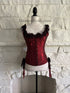 A statement of passion, structure, and drama. The Preservation of Allure corset in deep matte red satin is designed to sculpt the body and accentuate the hourglass silhouette, with 14 steel-boned panels that curve and bind with authority. Black fabric flowers trace the neckline and hips, adding romantic detail to this body-sculpting masterpiece. While this pre-loved piece shows signs of wear along the seams, its bold charm, bust-enhancing design, and artful construction ensure it remains a show-stopping treasure. Wearable art with a story, crafted for those who dare to make an entrance.